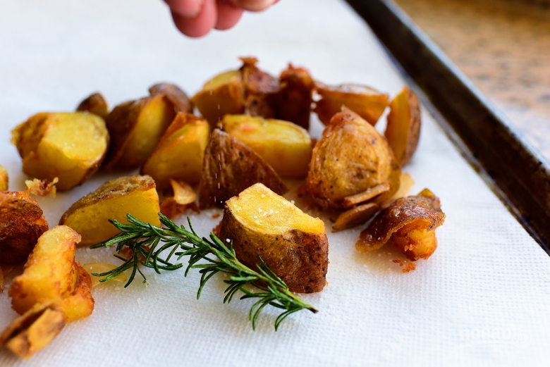 - Когда весь картофель станет золотистым, переложите его на решетку над противнем для охлаждения.