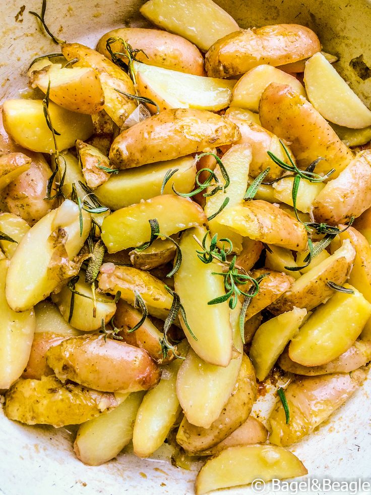 - 1,5 фунтов детского картофеля, промытого, высушенного и нарезанного в половине