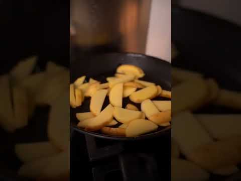- Я рекомендую разрезать картофель пополам (или меньше), потому что прямой край сковороды делает его более хрустящим.