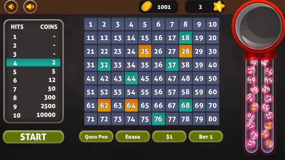 Получив электронную копию билета, понаблюдайте за тем, как игровой автомат Кено случайным образом выберет 20 шаров. В большинстве таких игровых автоматов используется специальное программное обеспечение.