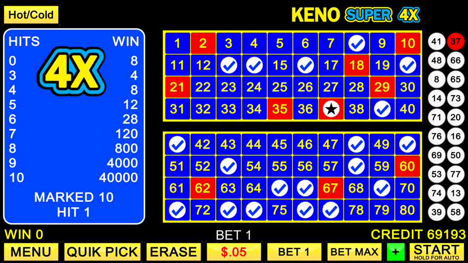 5. Некоторые варианты кено показывают в игре горячих и холодных номеров кено . Горячие номера появлялись часто, а холодные в последнее время не появлялись.