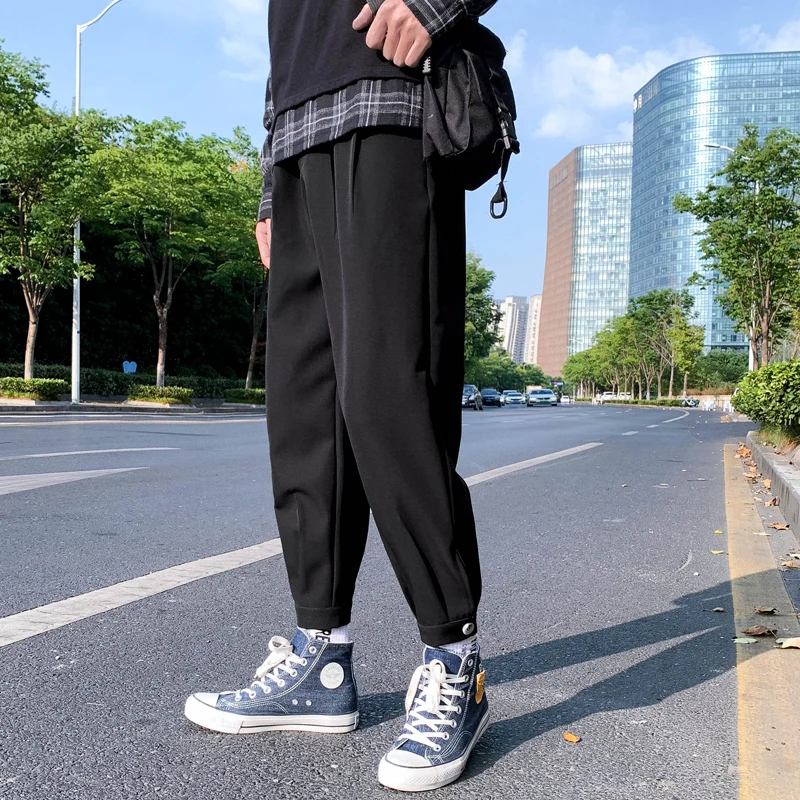 Мужские брюки casual из коттона весна-осень, штаны молодёжные однотонные повседневные черные
