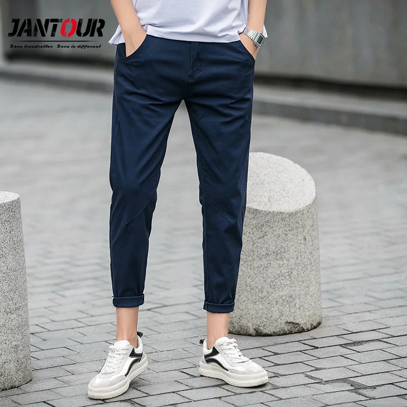 Мужские брюки casual из коттона весна-осень, штаны молодёжные однотонные повседневные синие