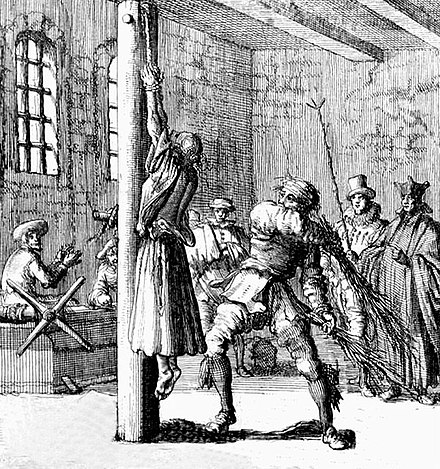 Закон о порке был принят в Англии в 1530 году. Согласно этому закону, бродяги должны были быть доставлены в близлежащий населенный пункт, «и там привязаны к концу телеги обнаженными и избиты кнутами на всем протяжении». такой рыночный городок, пока тело не станет окровавленным».