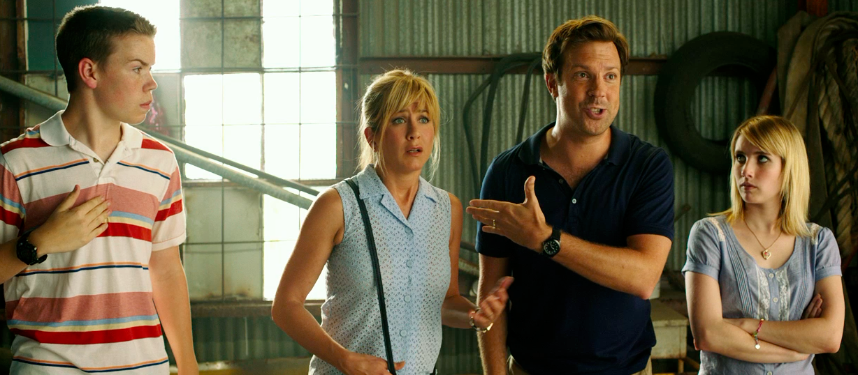 В We’re The Millers Джейсон Судейкис играет Дэвида, мелкого торговца марихуаной, который теряет свои деньги и тайник группе подростков. Чтобы вернуть долг поставщику. он должен отправиться в Мексику, чтобы забрать последнюю партию. Дэвиду нужен план, чтобы пересечь границу, поэтому он сажает фальшивую семью в дом на колесах, чтобы провести сумасшедшие выходные. Энистон играет экзотического танцора и его фальшивую жену для поездки.