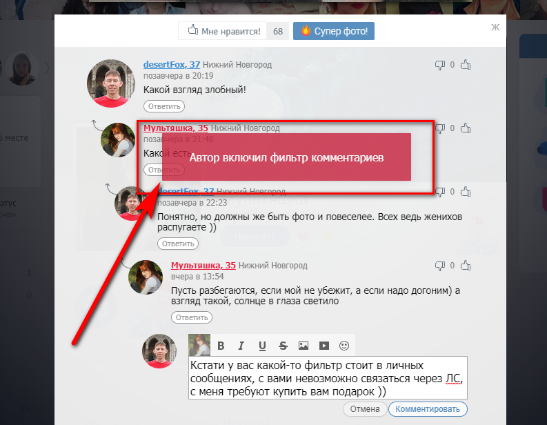 Чтобы просмотреть отфильтрованные комментарии:
