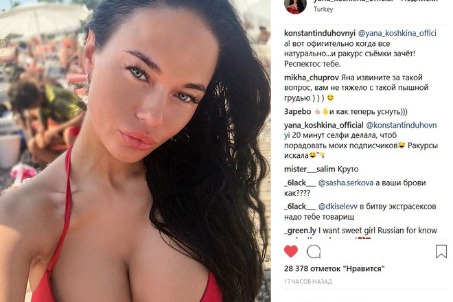 Зрителям сразу стало интересно, и они стали активно искать фото Яны Кошкиной до пластики. Но вот найти такое оказалось непросто. На всех фотографиях в сети, не считая детских, Яна была уже с большой грудью. Но если по поводу груди еще можно поверить, что это ее собственная, так как форма у нее довольно натуральная. То вот по поводу губ сомнения все-таки отпадают, тут налицо уколы гиалуроновой кислоты.