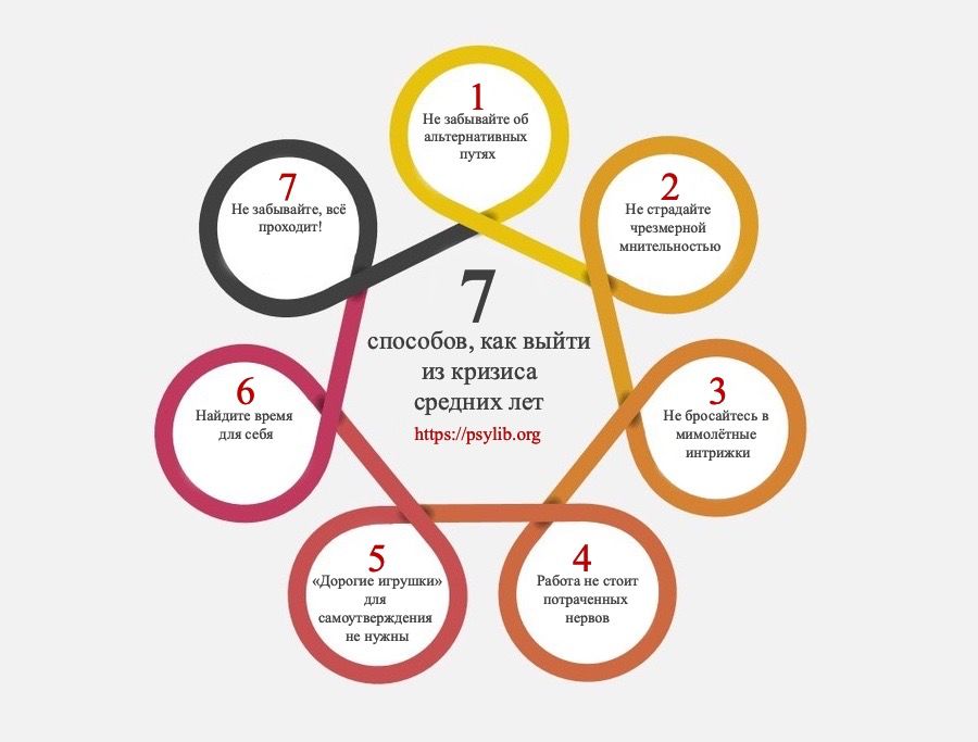 Кризис среднего возраста может стать как трамплином к новым победам, так и зыбучими песками, которые станут катализатором длительной депрессии. Очевидно одно: этот период необходимо спокойно и терпеливо проработать, чтобы вновь обрести внутреннюю гармонию и приобрести уверенность в своих силах.