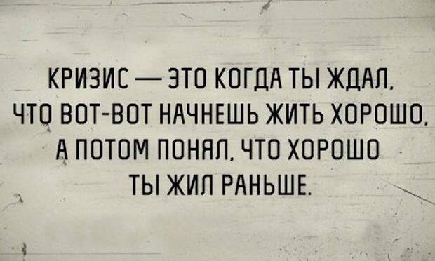 И вот этот кризис наступает. Что при этом происходит? Человек остро переживает утрату каких-то возможностей. Пугается перспектив, которые он видит вокруг или которые себе нарисовал. Но в какой-то момент эти переживания начинают угасать. Возникает понимание, что с этим уже ничего не поделать. Следует жить дальше. Когда человек смотрит вокруг, разговаривает на эту тему с кем-то еще, то понимает, что он не единственный, кто с этим столкнулся.