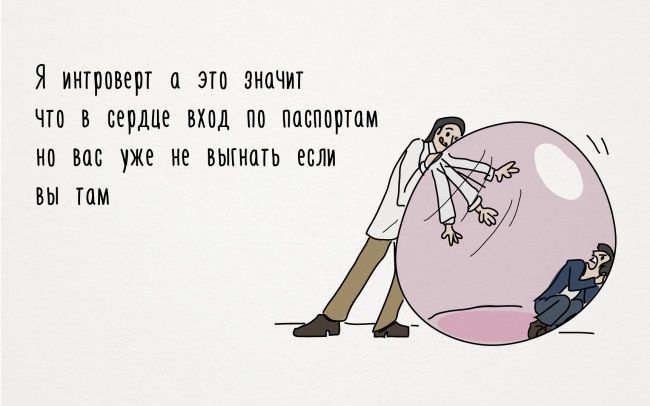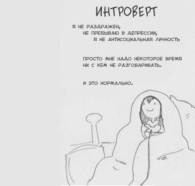 ) - Интроверты не ненавидят людей. Отсутствие у интроверта болтливости часто неверно истолковывается. Люди воспринимают это как знак того, что мы не любим других. Правда в другом. Интроверты часто избегают светской беседы, потому что мы считаем ее неискренней. Мы жаждем более значимой связи с людьми, с которыми разговариваем.