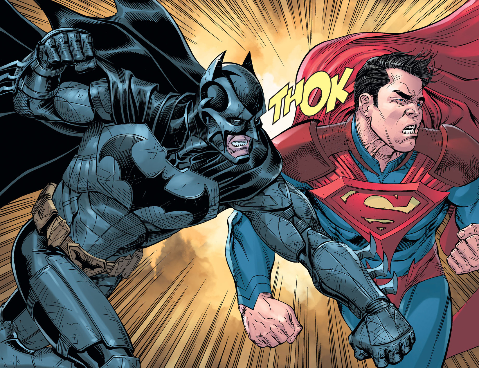 В «Бэтмене: Темный рыцарь № 5» Бэтмен получает дозу токсина страха Пугала, смешанного с ядом Бэйна.Чудо-женщина вызывает Супермена, чтобы помочь ему. Он находит Бэтмена в сарае на земле и пытается уговорить его, но Бэтмен бьет его с разворота, который отправляет его через стену. Супермен неоднократно говорит, что не хочет причинять ему боль, но Бэтмен не в своем уме и разглагольствует о том, что Супермен — инопланетянин. Супермен напоминает Бэтмену, что он физически лучше во всех отношениях.