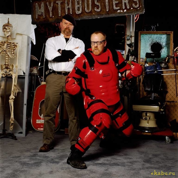 Когда мы задумали историю, стало очевидно, что Джейми Хайнеману и мне придется прыгать самим. Это привело к тому, что возникли два эпизода: первый, где мы тренируемся, и второй, где происходит настоящий эксперимент. Я решил, что с точки зрения визуальной истории наши костюмы в том и другом случае должны отличаться. Для тренировочной сессии костюмеры выдали нам спортивные костюмы с надписью «Каскадер-практикант» на спине. Для самого же эксперимента, когда стало ясно, что мне придется прыгать, я долго думал, какой наряд будет лучше смотреться на экране и вообще подойдет к этой теме.