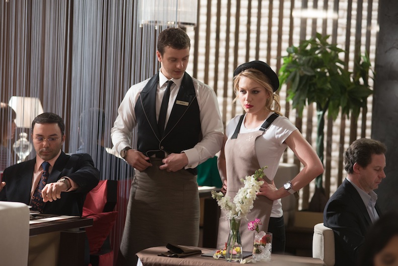 Роль огненно-рыжей официантки ресторана «Claude Monet» сыграла Ольга Кузьмина. В кино появилась, будучи еще школьницей, — снималась в киножурнале «Ералаш». В 2006 году актрису пригласили в один из эпизодов сериала «Счастливы вместе». Сейчас фильмография актрисы насчитывает более 50 работ. Сыграла в популярных сериалах «Мамочки», «Карпов», «Без срока давности». Сейчас Ольга Кузьмина снимается в картинах «Высокие каблуки», «Фронт», «Кумир».