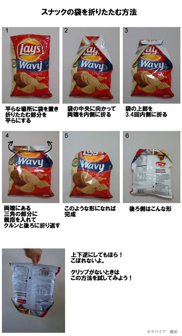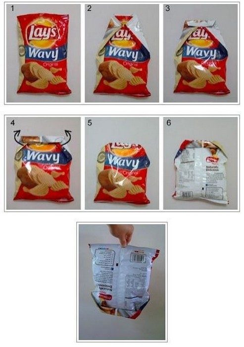 Когда речь идет о наполовину съеденной пачке чипсов, многие люди склонны либо использовать скрепки и зажимы, либо скручивать верхнюю часть упаковки в трубочку.