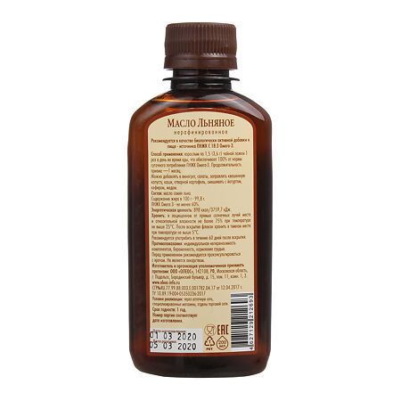 Льняное масло занимает первое место по биологической ценности всех пищевых растительных масел. В его состав входят омега-3 жирные кислоты, витамины А, Е, Р. Оно имеет уникальные диетические свойства и помогает улучшить работу желудочно-кишечного тракта, иммунной, кровеносной, сердечно-сосудистой систем.
