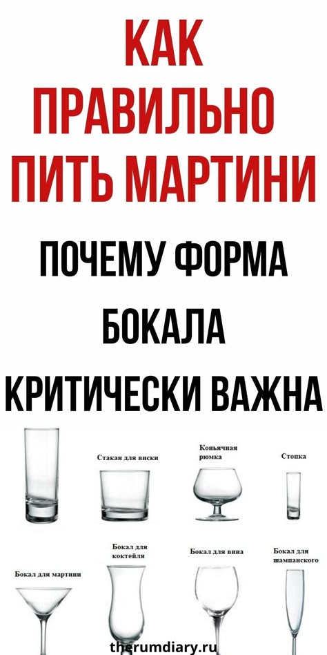 То есть, они должны иметь толстое дно и быть достаточно высокими, чтобы «спрятать» горечь от аромата. - Почти каждый видел такие треугольные, а точнее конические, бокалы на высоких тонких ручках, которые характерно называются «мартини». Видно, что это не случайно, так как коктейли с этим вермутом чаще всего подаются именно в них.