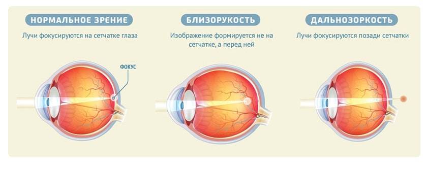 При близорукости форма вашего глаза препятствует правильному преломлению света, поэтому свет направляется перед сетчаткой, а не на сетчатку. Например, роговица в передней части вашего глаза может быть слишком круто изогнута, или ваш глаз может быть длиннее, чем обычно. В любом случае световые лучи не достигают сетчатки. Когда свет не фокусируется на сетчатке, как это должно быть, ваше зрение расплывается.