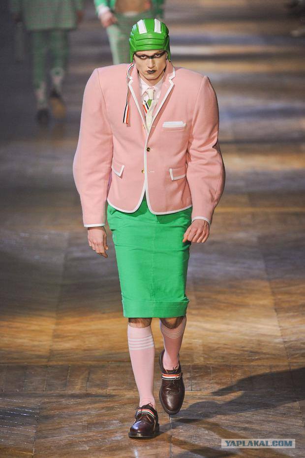 Чтобы повторить образы с подиума в реальной жизни, сильному полу потребуется недюжинная смелость и полное отсутствие здравого смысла.Фото: SPLASH NEWS