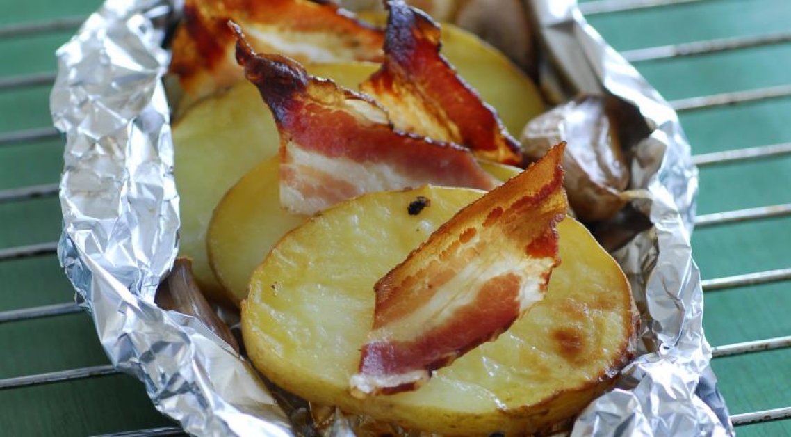 - Если вы чувствуете, что картофель готовится слишком быстро (при этом он подрумянивается, не пропекаясь), дайте грилю немного остыть или отодвиньте пакеты из фольги подальше от источника тепла.