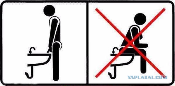 Мужчинам следует присесть, чтобы пописать, так как за пределами туалета всегда разбрызгиваются маленькие капельки мочи.
