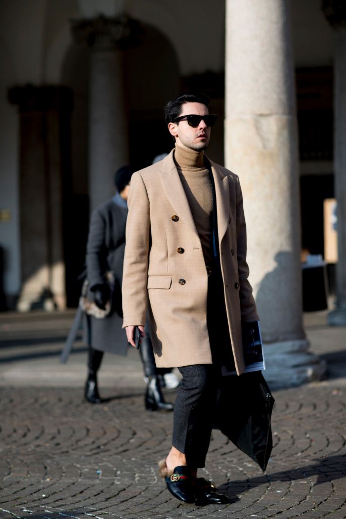 Отдельное внимание в мужском гардеробе занимает пальто бежевого цвета. Такая верхняя одежда короткая или длинная обязательно выделит мужчину в толпе. Лучше всего носить его с темными костюмами, очень темной обувью и сдержанными аксессуарами.