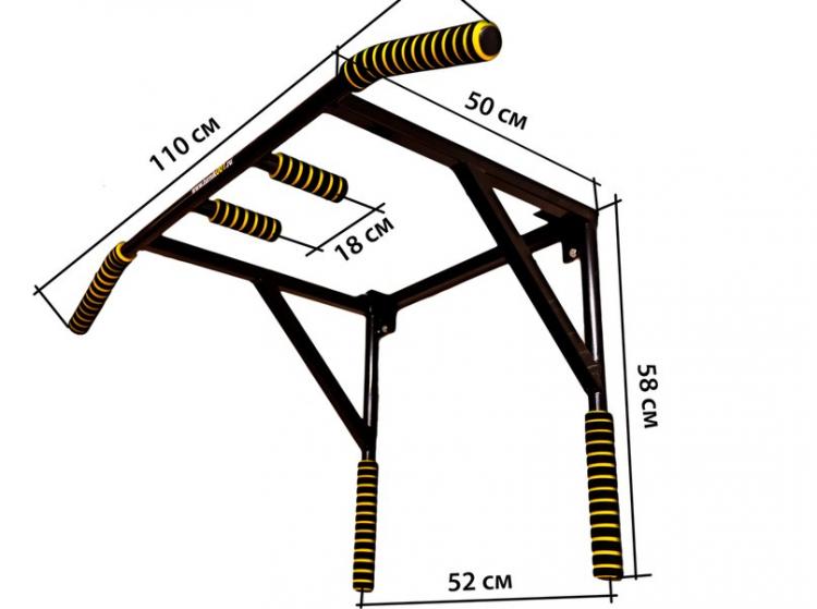 Турник 3 в 1 Атлет черный с желтыми ручками. брусья пресс. Тренажер для дома. Разборный. Настенный