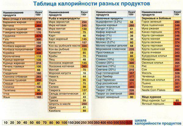 Чтобы рассчитать, сколько калорий каждый день поступает в организм, достаточно заглянуть в соответствующую таблицу калорийности (энергетической ценности) продуктов. Кроме того, калорийность обычно указана на упаковке.