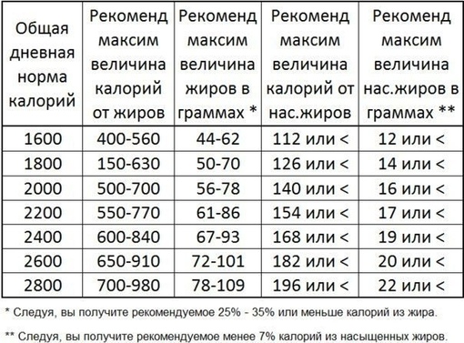 Минимальное количество калорий в день