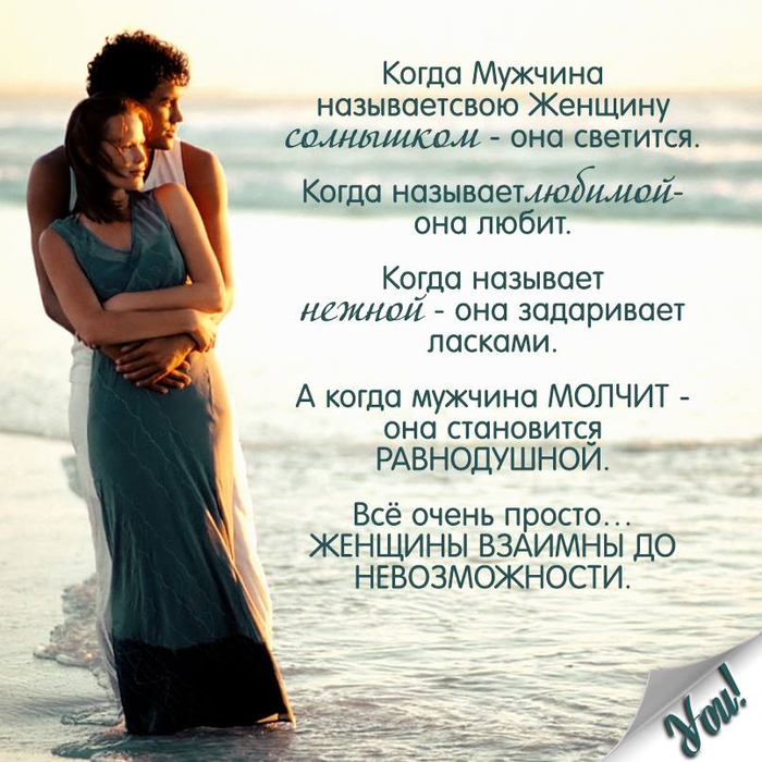 - Я очень ценю твою заботу. Когда ты так необычайно ласкова и нежна, мне хочется бросить весь мир к твоим ногам. Безумно счастлив, что рядом со мной такая женщина.