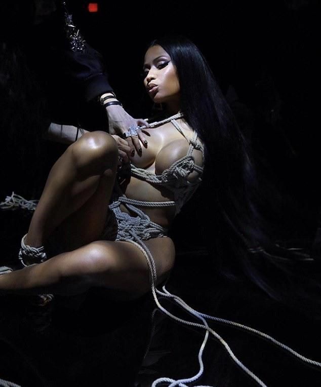 Певица демонстрирует большое декольте, когда она полностью завуалирована для выступления в рамках тура Pinkprint. Минаж подписала фото словами к своей песне «Grand Piano».