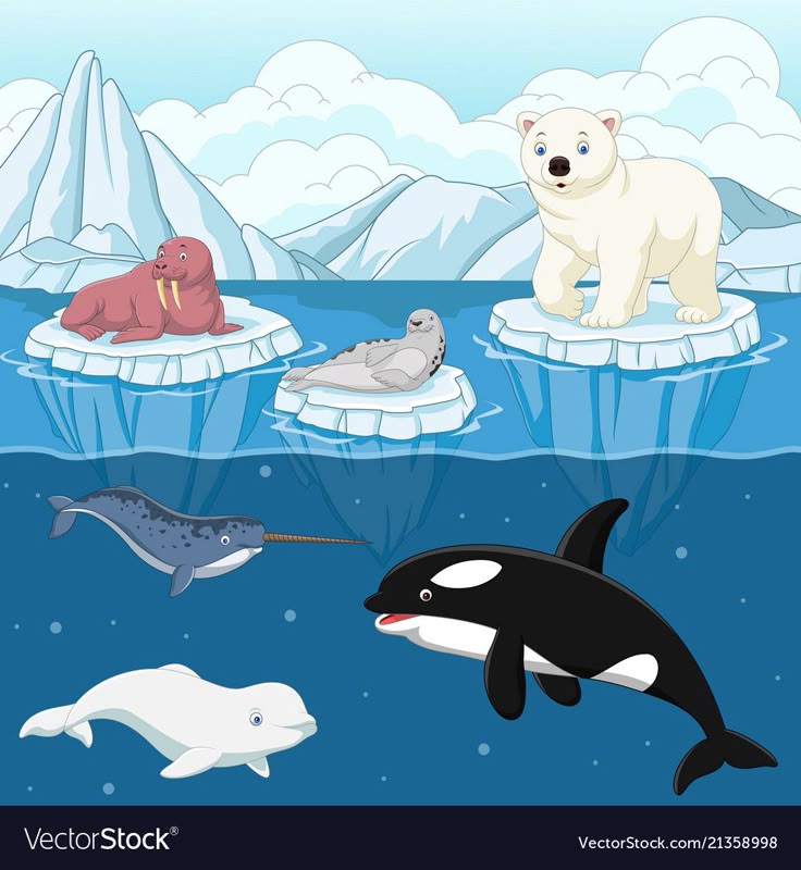 Среди основных примеров арктических животных: белый медведь (который живет только на Северном полюсе), морж, тюлень, гренландский кит, бык, белуга, песец и различные птицы, например, арктические крачки или белого гуся, кроме пингвина, который живет только на Южном полюсе.