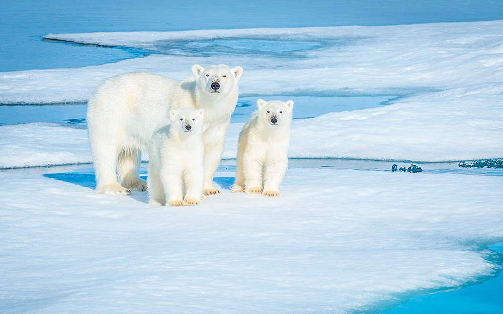 Мы все связываем белого медведя (Ursus maritimus) с арктическим регионом. Диапазон этого большого, белого, плотоядного животного сосредоточен в основном в пределах арктического региона. Однако, хотя название этих медведей включает слово «полярные», раньше не предполагали, что они выйдут за пределы 82° северной широты. Однако в 2006 году экспедиция группы активистов «Гринпис» и исследователей доказала обратное. Во время миссии по достижению Северного полюса, к их крайнему удивлению, команда встретила белого медведя всего в 1,6 км от Географического Северного полюса. Когда медведь приблизился к палатке команды на арктическом морском льду в 4 часа утра, исследователям удалось отвлечь его. По их словам, животное оказалось не агрессивным, но очень любопытным по своей природе. Присутствие тюленей в регионе полюса, где был замечен медведь, может объяснить, как ему удалось выжить в 885 км от ближайшей суши.