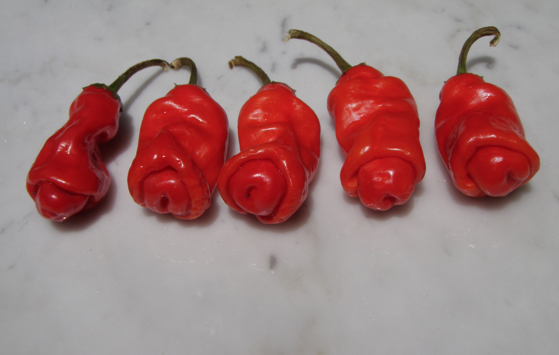 И начинает нашу традиционную десятку перец, название которого переводится как Тринидадский скорпион. Даже если вы являетесь любителем всего «острого», крайне не рекомендуем Вам лакомиться этим перцем. Дело в том, что содержание капсаицина (жгучего вещества) таково, что выращивать и перерабатывать данный овощ приходится в костюмах химзащиты. Выращивают же его, в основном, для производства слезоточивого газа и краски, защищающей суда от нарастания на них колоний моллюсков.
