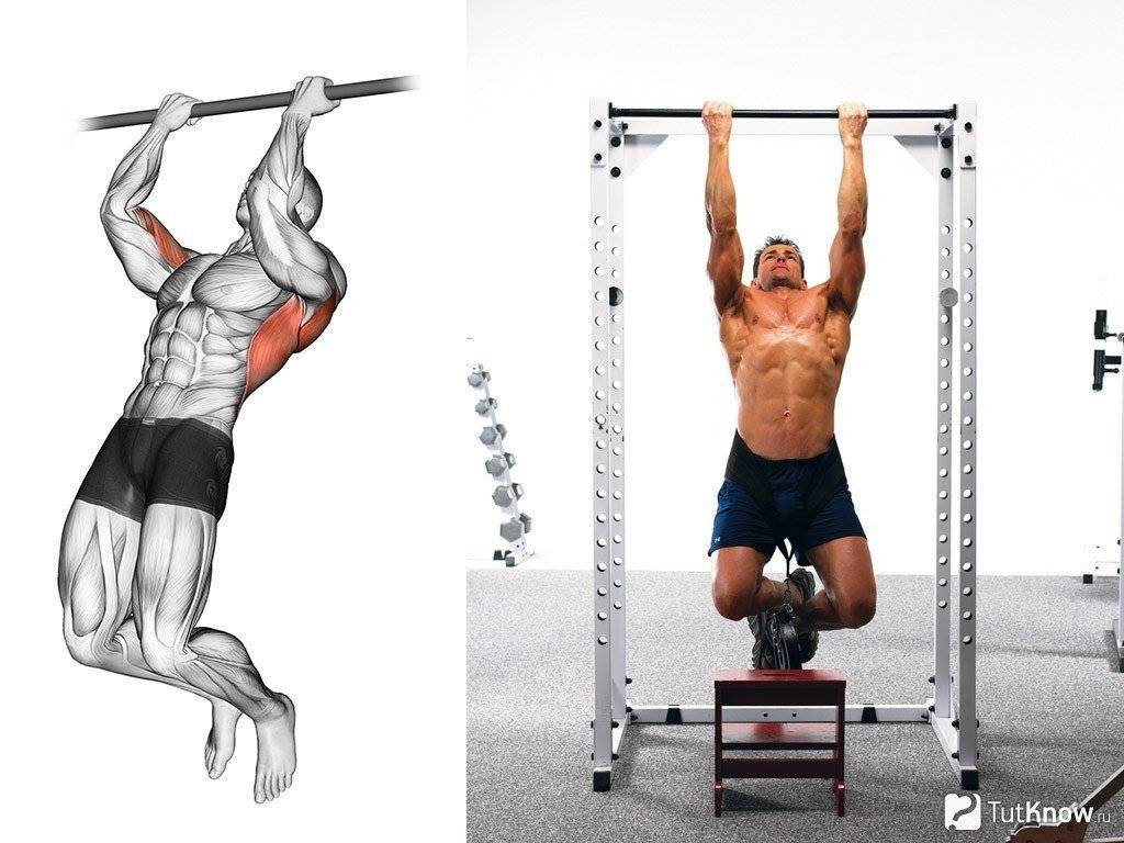 В отличие от подтягиваний, которые мы обсудим далее в этой статье, подтягивания концентрируются на бицепсах, а также задействуют часть груди. Поскольку грудные мышцы очень большие, это означает, что это упражнение часто является самым простым для начинающих.