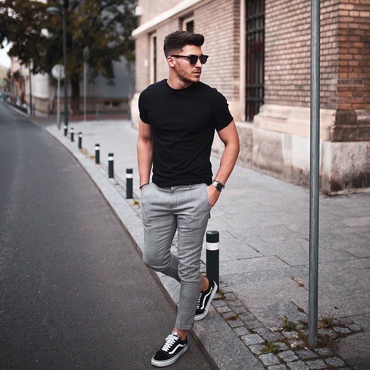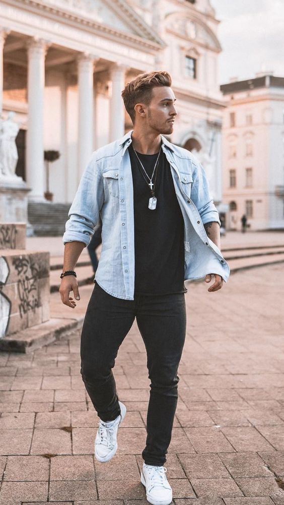 Простая хлопковая рубашка, свободные брючки и модные кроссовки вместе создают расслабленный образ, но как круто он смотрится!