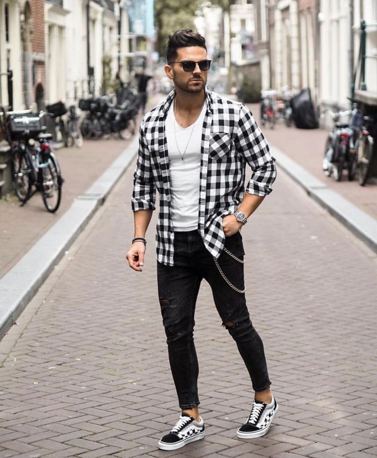 Гера — яркий представитель арт-движения в Краснодаре, успешный предприниматель, диджей и творческая личность, умеет быть всегда разным. Его образы всегда контрастны: то он демонстрирует крутые аксессуары, то выбирает простой минималистичный образ. Здесь Герард из простой базовой белой футболки и черных брюк смог сделать интересный и стильный лук. Сверху он надел классическое клетчатое пальто и классные ботинки. Идеальный пример того, как в простых вещах выглядеть всегда уместно, но при этом секси!