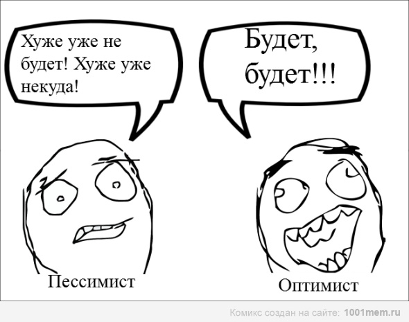 Стакан наполовину пуст, а над головой нависают грозовые тучи, никогда не с серебряной подкладкой. Пессимистов часто критикуют за их склонность к негативу и склонность ожидать худшего в большинстве ситуаций.