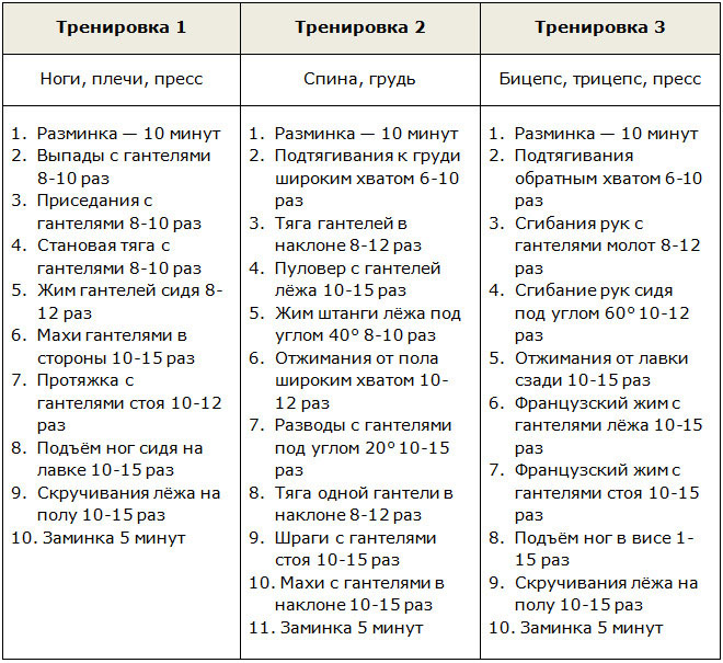 Пример силовой тренировки на все группы мышц: