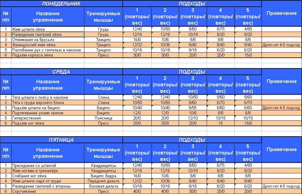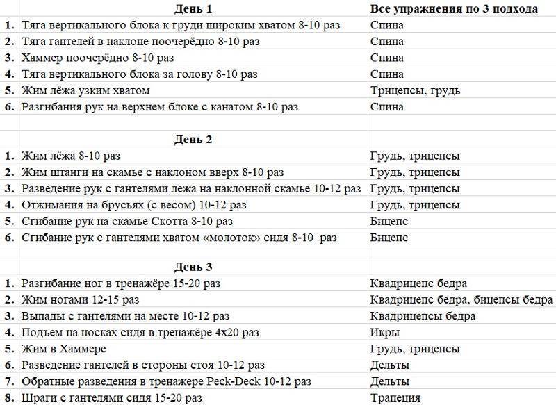 Помните, что 4-дневная сплит-программа не предназначена для улучшения силы или мощности. Эта программа строго предназначена для набора серьезной мышечной массы размера.