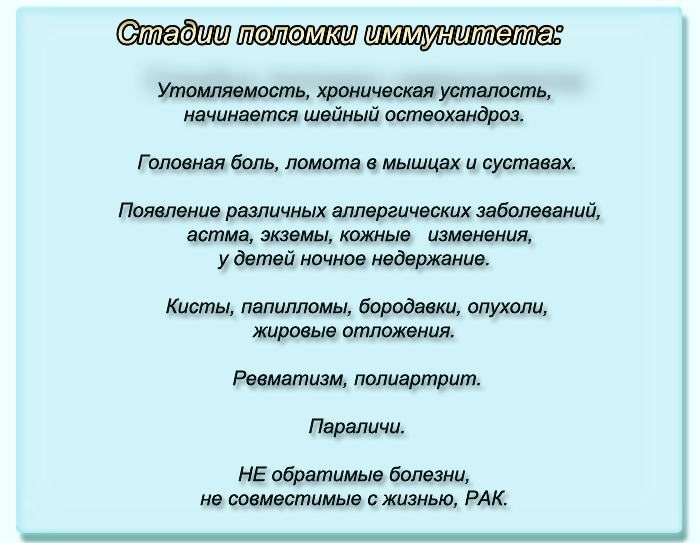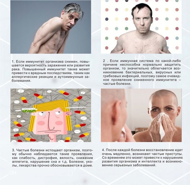 — Мы привыкли говорить об ослабленном иммунитете, когда люди начинают часто болеть. Но простое ОРЗ или же ОРВИ не означает, что иммунитет ослаб. Если человек болеет три-четыре раза в год, особенно в крупнопромышленном городе, — это нормальное явление. Другое дело, если инфекция усугубляется, человек начинает болеть часто, длительно, инфекция спускается глубже, возникают часто тонзилиты, отиты, стоматиты, бронхиты или пневмонии. Если рецидивирует инфекция в почке или мочевом пузыре, слишком часто, появляется герпес, фурункулы, угревая сыпь, грибковая инфекция (кандидоз у женщин) — одной из причин этого может стать сниженный иммунитет, то есть клетки иммунной системы не могут до конца иллюминировать инфекционный агент и он вызывает воспаление. Такие пациенты требуют комплексного обследования и лечения.