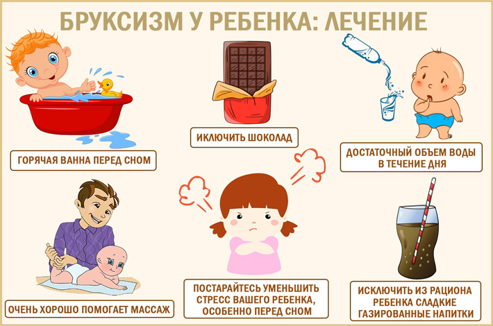 Понаблюдайте, когда днем у ребенка возникает это явление, что ему предшествует. При частых приступах рекомендуется консультация детского психолога или невролога. Проблемы с пищеварением и эндокринной системой также способны вызвать приступы дневного бруксизма.