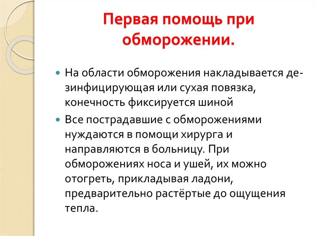 Помните, правильно оказанная доврачебная помощь ускоряет реабилитацию обмороженного человека.