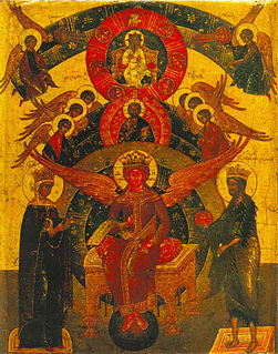 Сему – верный свидетель на небе, говорящий к Ней: «Вся ты прекрасна, возлюбленная моя, и пятна нет на тебе!» (Песн.Песн.4:7). И святой Дамаскин пишет: «Вся – чертог Духа, вся – град Божий, море благодатей, вся – добра, вся – ближняя Богу».