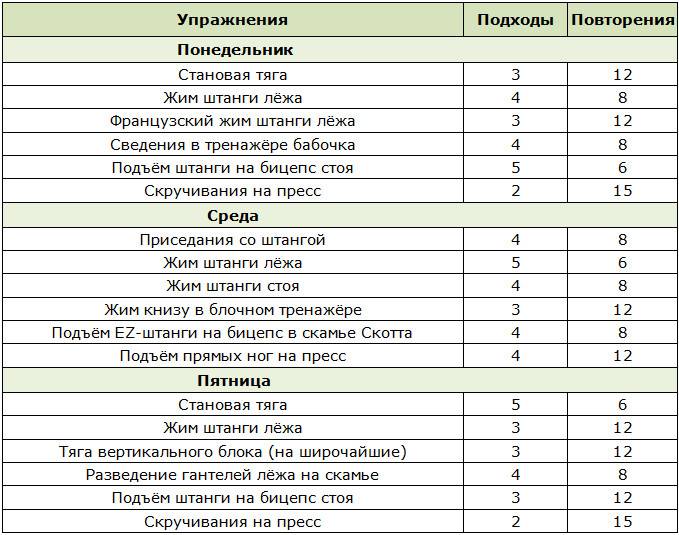 - 6-дневные программы среднего уровня с 3-кратным жимом лежа
