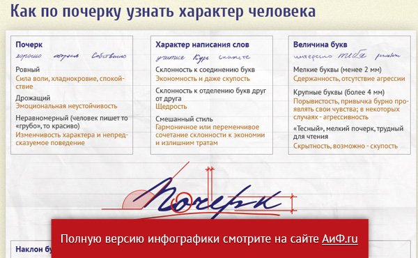 Понять характер и составить личностный портрет человека также можно по его подписи:
