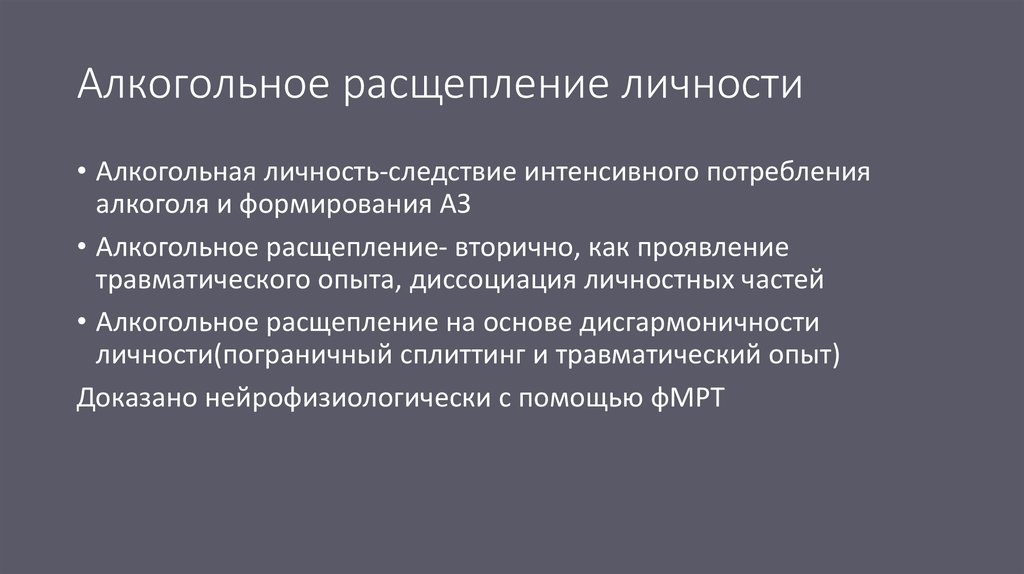 Это не значит, что расщепление личности будет у всех, кто столкнётся с малейшим стрессом. Но люди с достаточно хрупкой нервной системой, подвергшиеся длительному насилию, могут испытать на себе этот побочный эффект защитного механизма.