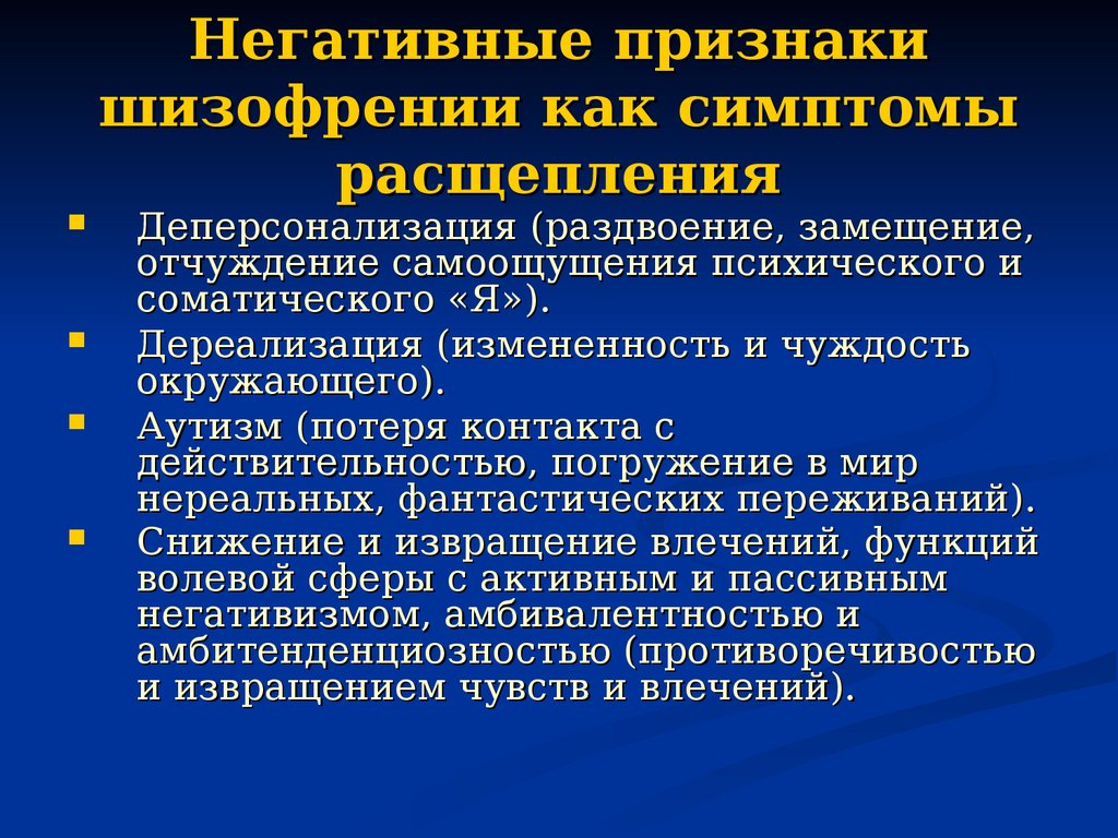 Характерные для синдрома расщепления личности симптомы выглядят следующим образом: