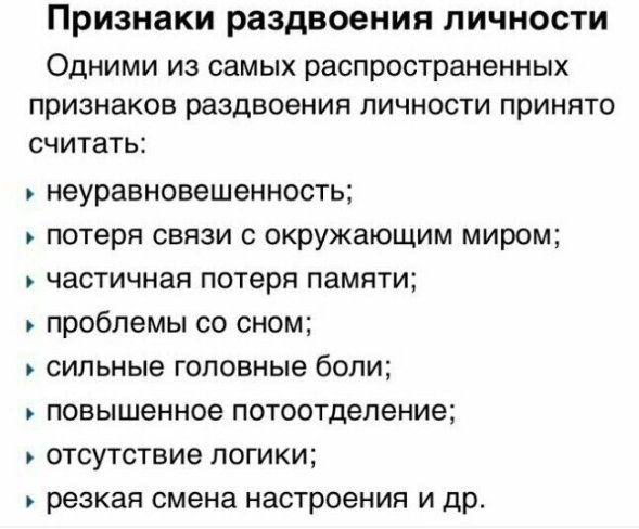Психические симптомы раздвоения личности или диссоциативного расстройства идентичности