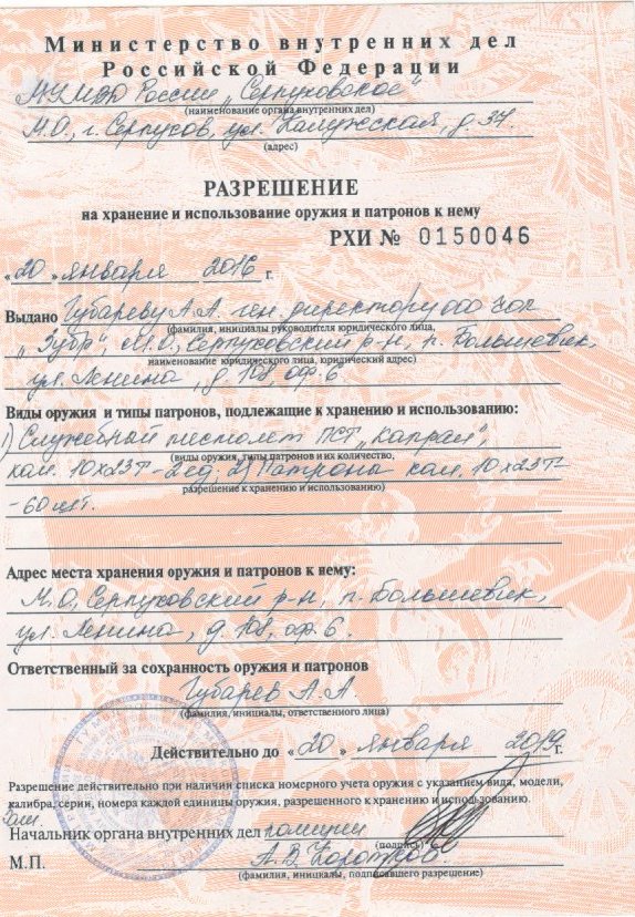 - разрешение на приобретение гражданского оружия,