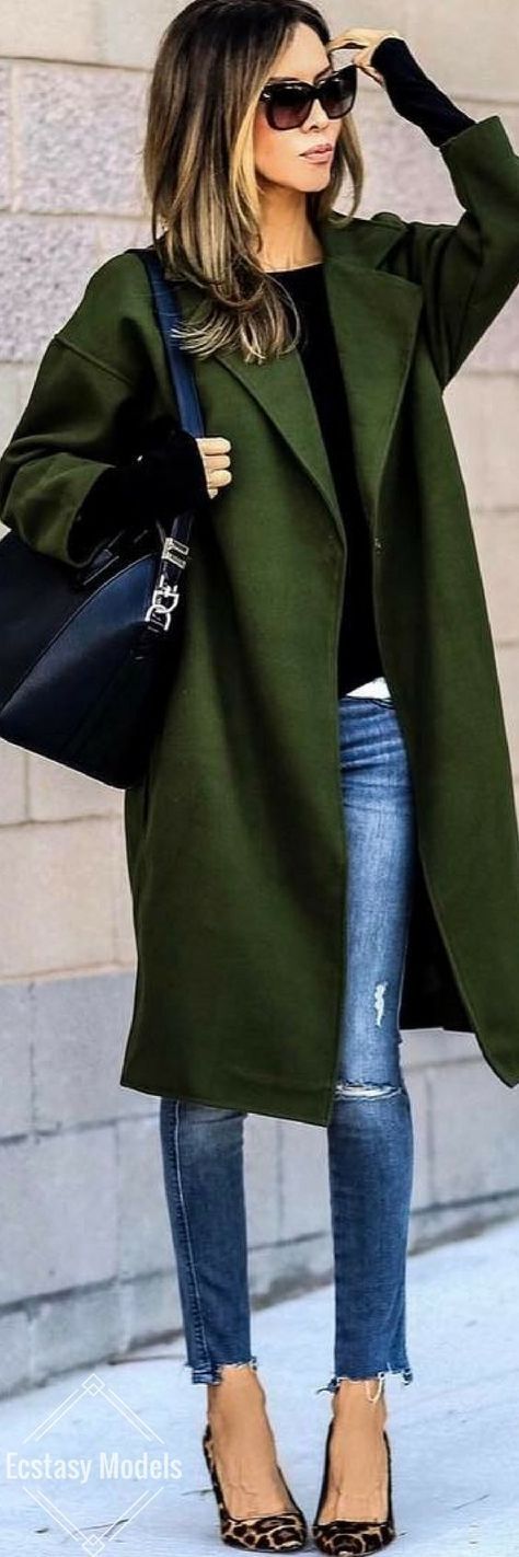 Уникальный, классический и приземленный в действительно шикарном стиле. Оливковое пальто легко сочетается с джинсами или платьями. Варианты действительно безграничны.